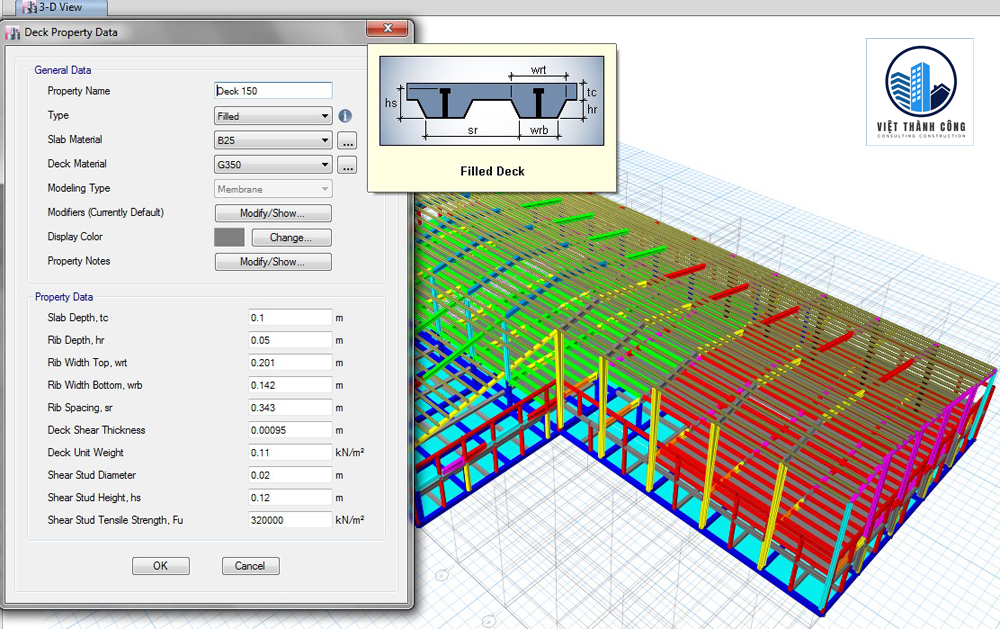 Hình 2. Đề xuất tính dầm thép sang dầm liên hợp của Việt Thành Công giúp Nhà xưởng Thiên Phước (Hóc Môn) giảm 10% chi phí